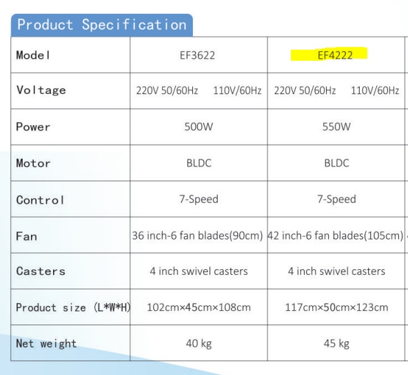 Especificaciones para Ventilador industrial portatil redondo 550W 110V RGC